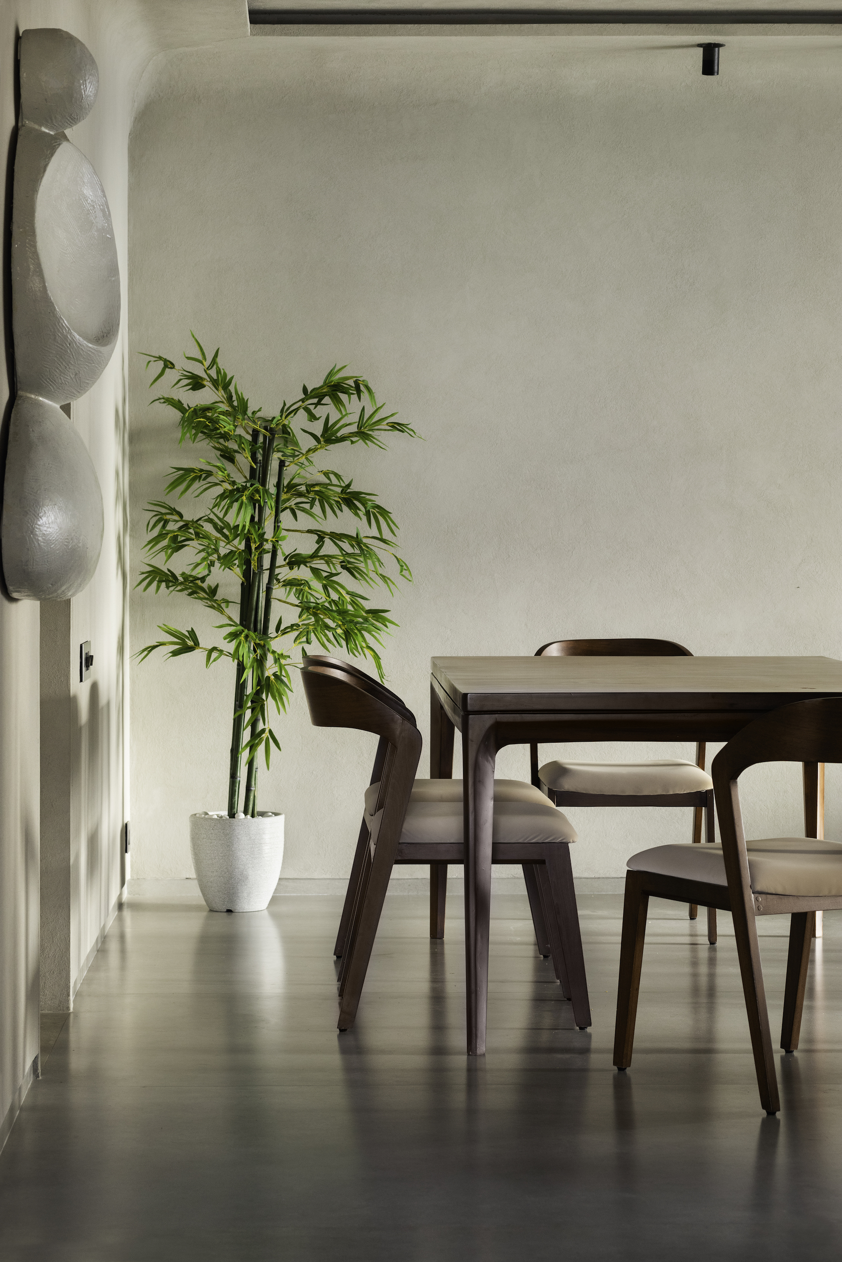 The dining area and bar counter in Aether Shore are much more than mere functional spaces; they are the heart of social gatherings, where elegance and practicality converge to create unforgettable experiences. Abstract sculptures, carefully chosen for their aesthetic appeal, add a touch of artistry to the space, creating visual interest and sparking conversation. The lighting, in particular, plays a crucial role in setting the mood, casting a soft glow that enhances the space’s elegance.