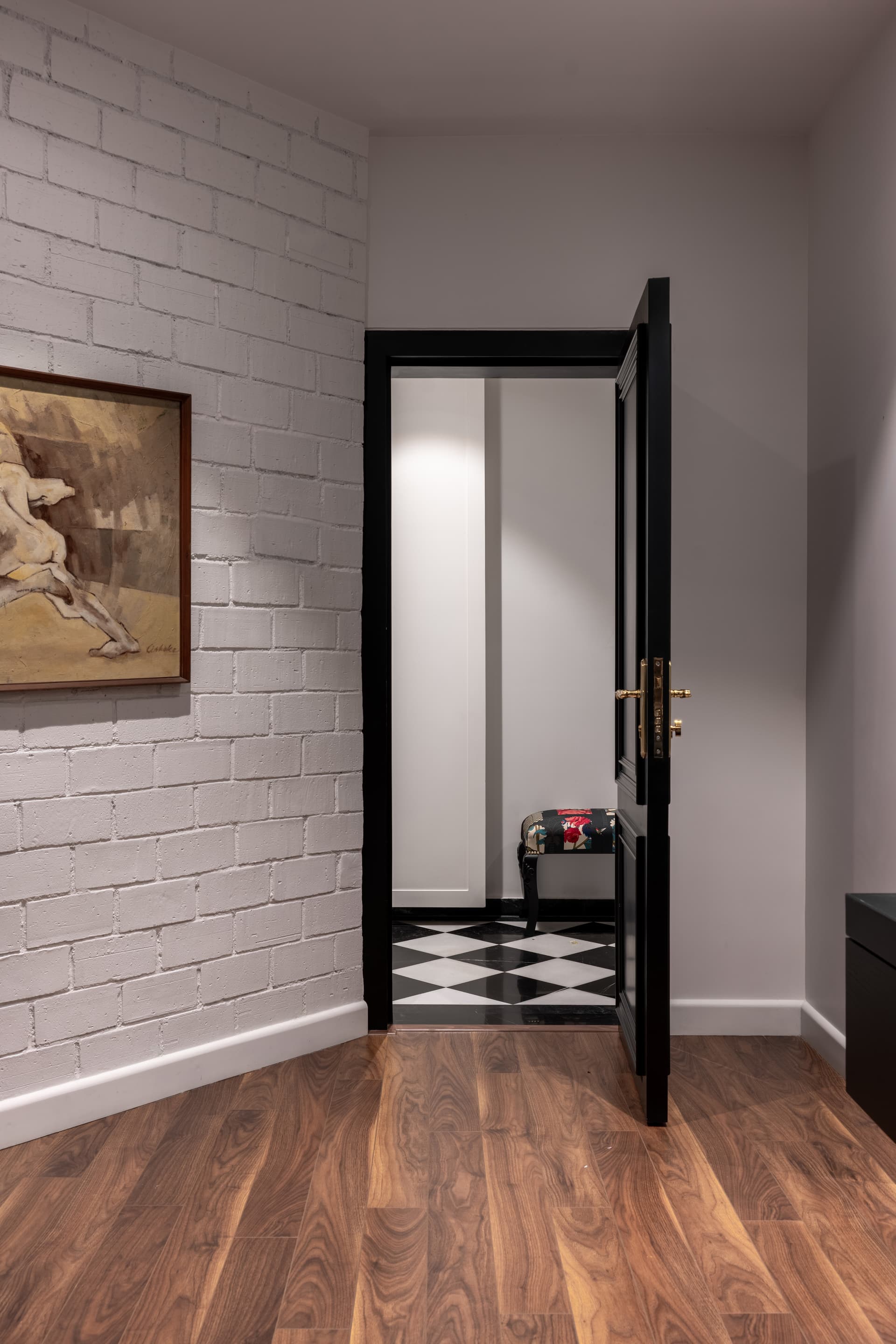 Every corner tells a story; every surface holds intention. The apartment is not merely a dwelling but a design manifesto—a testament to the beauty of contrasts, continuity, and craft.