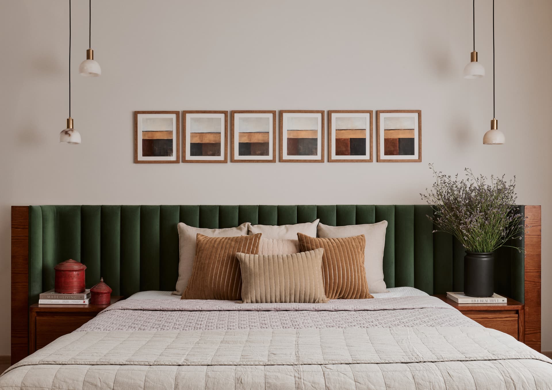 The bedrooms continued the theme, with muted tones and clean silhouettes. Wooden and cane detailing carried through, like a soft refrain in a familiar song, provides textural interest and visual continuity. In the master ensuite, a cane-woven headboard, wardrobe shutters and blinds attain a cohesive look, while in the second bedroom, the upholstered backrest extends on either side, wrapping the side tables in an embrace, just like a tree hugging you back. The guest bedroom, by contrast, achieves a minimal look with dark brown hues timber and white plastered walls. “Every design decision, from colours, furnishings to details were made with both intention and empathy,” says Manisha. “How would this feel to live in, day after day? How would this wear, age, and evolve with the people inhabiting it?” she adds.