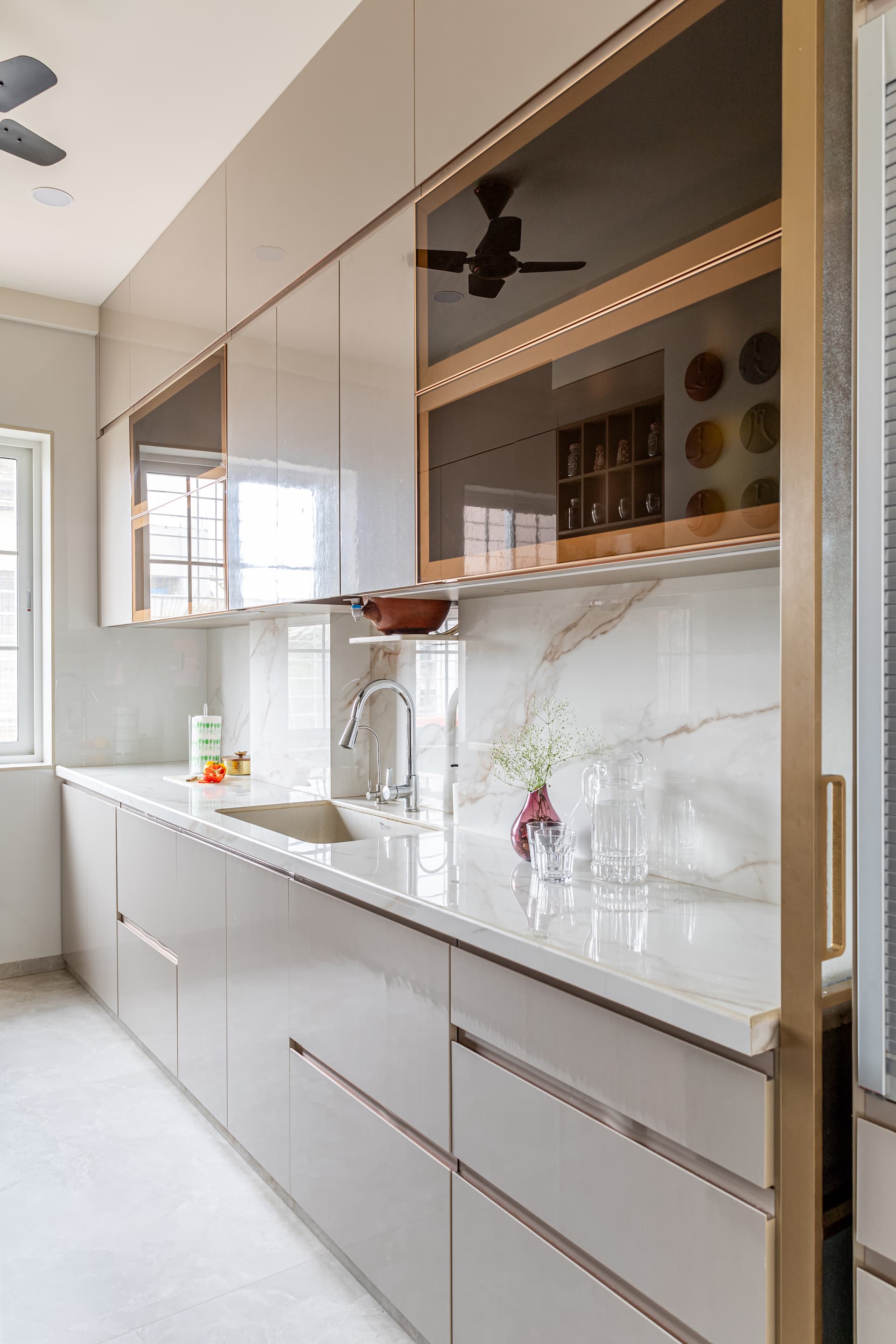 The kitchen, a key element in this contemporary abode, exemplifies modern functionality and style. Designed with both aesthetics and practicality in mind, it features high-quality cabinetry in a sleek, high-gloss finish that complements the home’s minimalist theme.