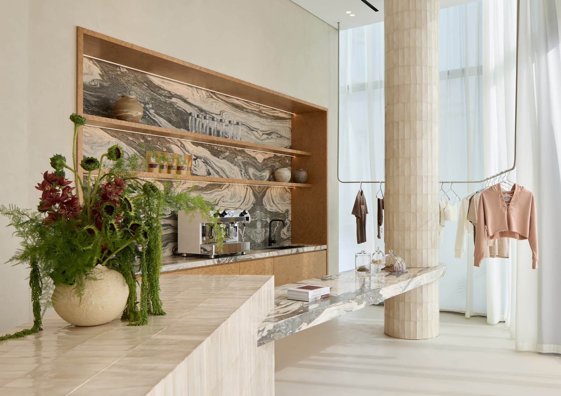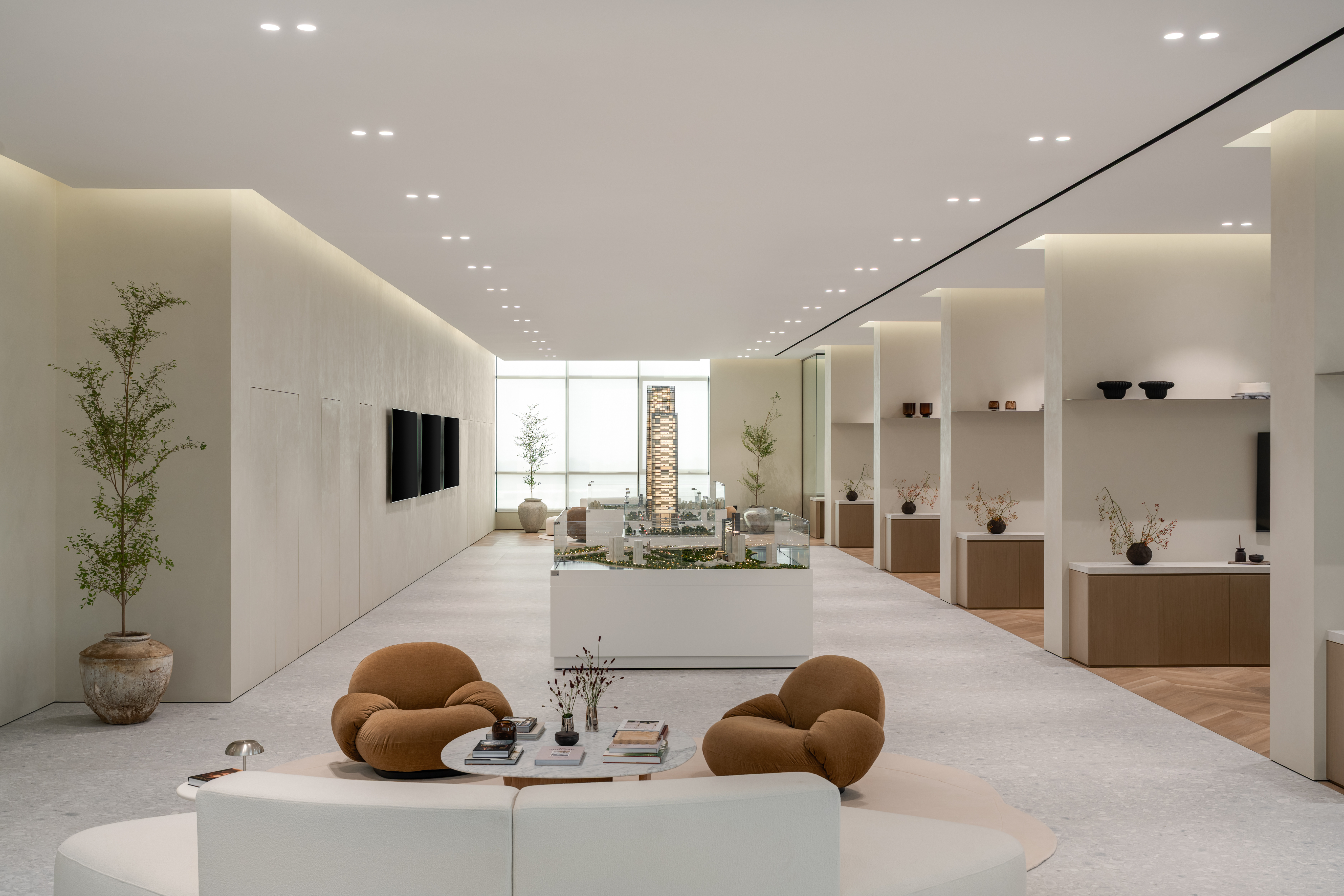 Spanning approximately 1,200 square meters, the project reimagines the conventional sales office as a welcoming, hospitality-driven environment where visitors feel comfortable engaging with the brand.